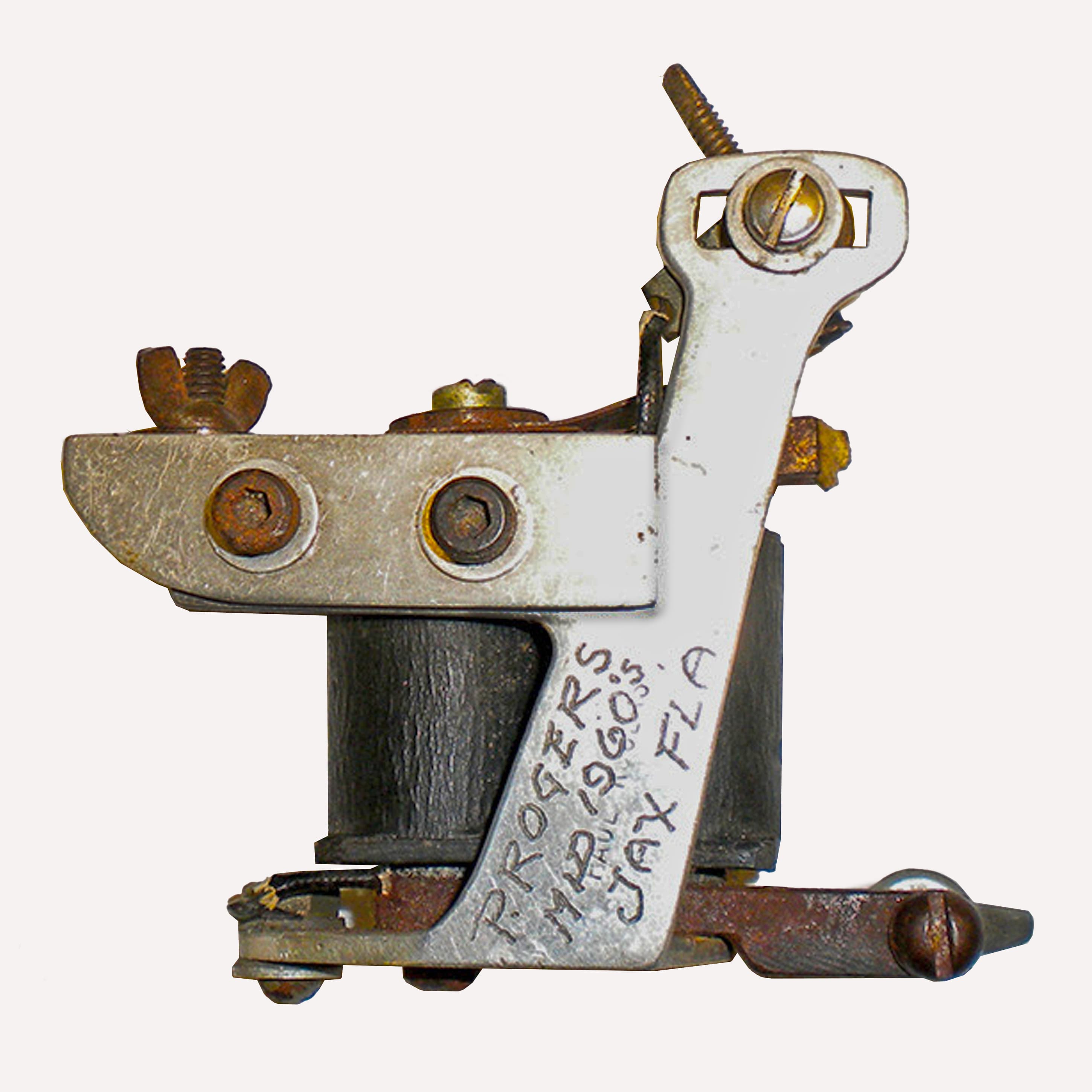 Nestled in a 6' x 10' shed behind his mobile home in Jacksonville Beach, Florida, the Iron Factory was where the magic happened. In this intimate space, Rogers meticulously hand-built tattoo machines, fusing engineering with artistry to push the craft forward. But his impact went beyond machines—he was a mentor, sharing his knowledge with the next generation of tattooers.